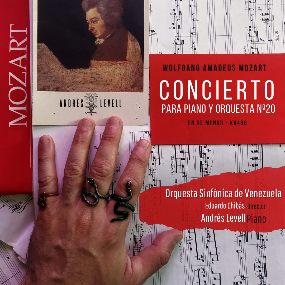 La he tocado con varias orquestas de Venezuela, bajo la batuta de diversos directores y en grandes teatros. Y esta grabación publicada en Akanis Records se trató de un momento increíble que siempre recordaré con gran agradecimiento. Fue Eduardo Chibás quien me invitó a tocar de solista con la gran Orquesta Sinfónica de Venezuela y, lo más importante, me dio la libertad absoluta de abordar la interpretación según mi criterio y necesidades expresivas. Y no solo eso, también compartimos una completa afinidad mozartiana. Ambos compartimos un mismo principio universal e innegable: Mozart no había sido un geniecito tonto, un infante ingenuo, tal como se le ha retratado desde su muerte. Pero eso es tema para otro post.